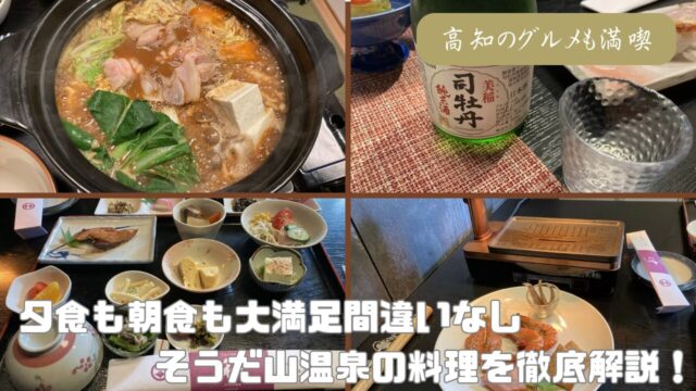 高知エリア 【高知グルメを堪能】夕食だけじゃなく朝食も超豪華!「そうだ山温泉 和」の料理を徹底解説! 2025年10月13日 しかさん しかさんの四国湯めぐりツアー 高知県の人気温泉宿「そうだ山温泉 和」の料理について解説します。 温泉や客室だけでなく、料理にもこだわっている「そうだ山温泉 和」の …