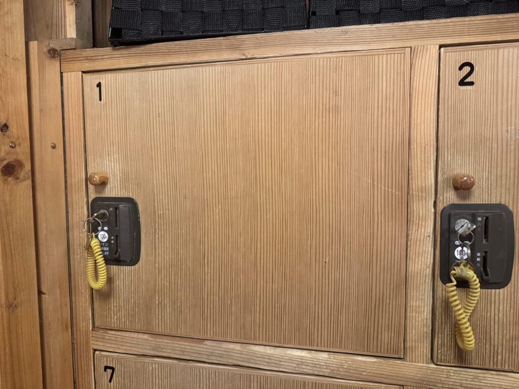 - 男湯のロッカーは100円ロッカー式で、100円玉がないと詰む(笑)