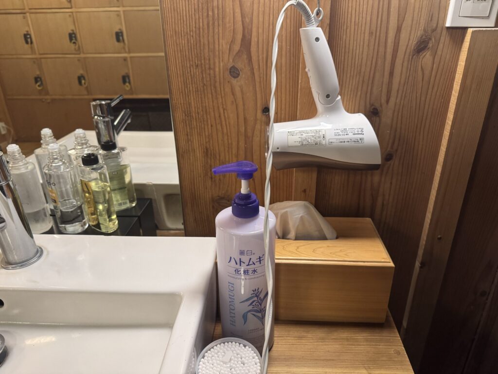 化粧水や整髪料、ドライヤー、くしなどを完備!
