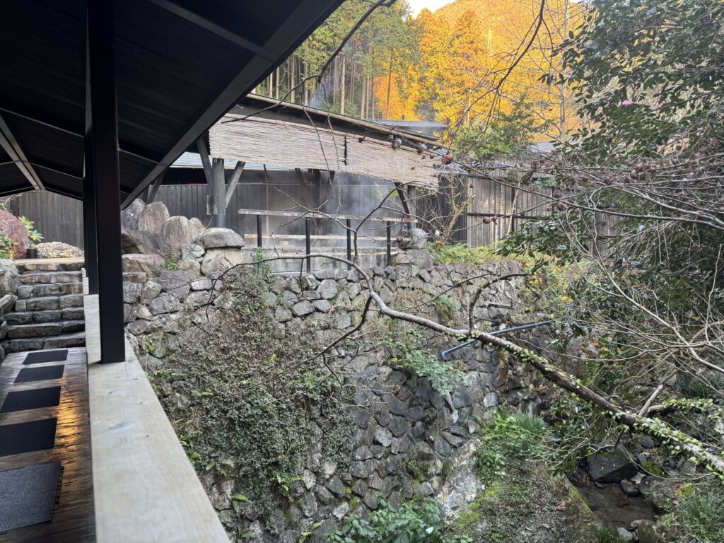 時折、露天風呂から薪を燃やした時の煙がモクモクと出ているのが見えます。