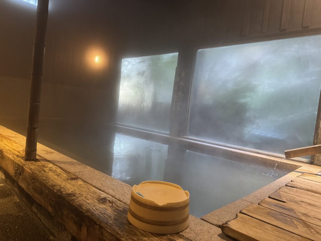 この日は気温が低く、体が冷え切っていたので内風呂から入りました。