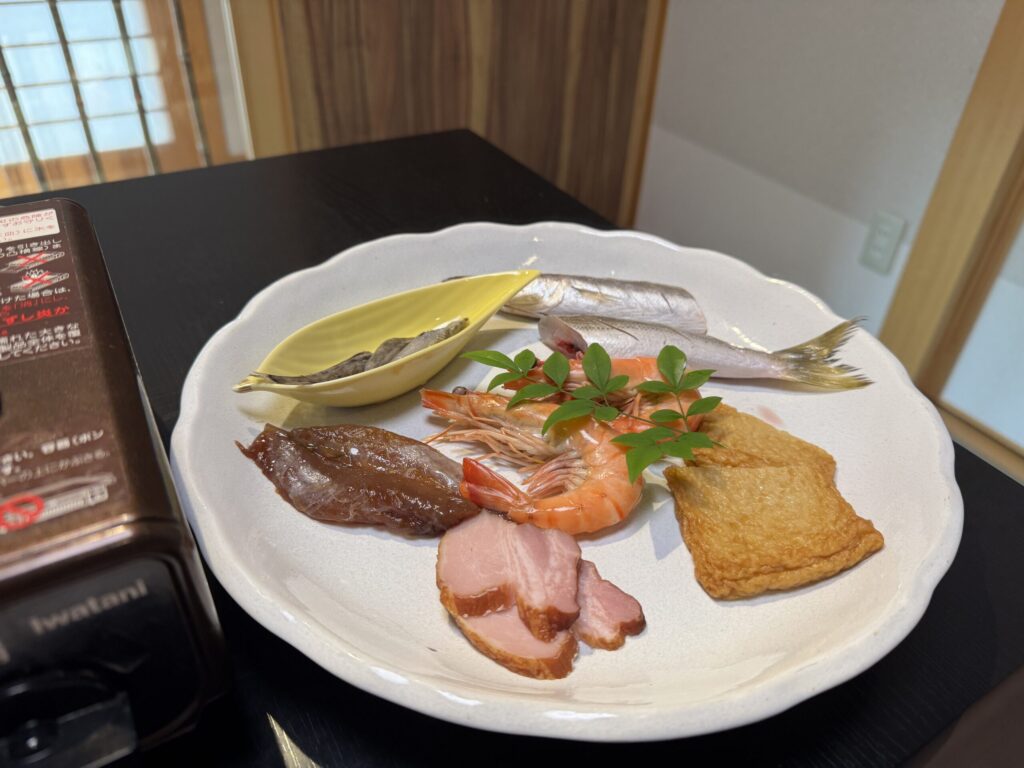 - 夕食の鍋は3種類から自分で選ぶことができる