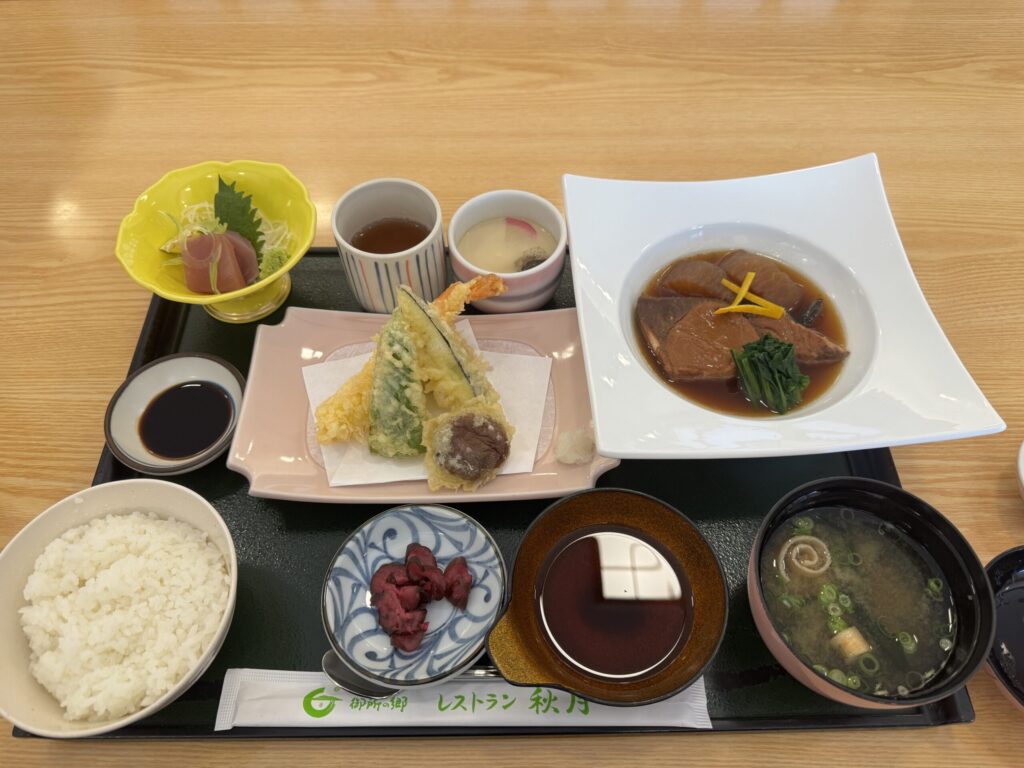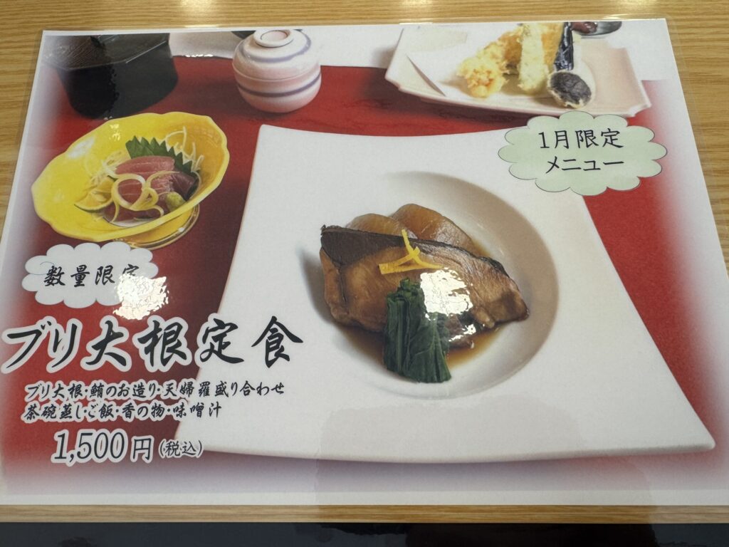 名物の「たらいうどん」や特大海老天丼と最後まで悩みましたが、今回は数量限定の「ブリ大根定食」をチョイス。
